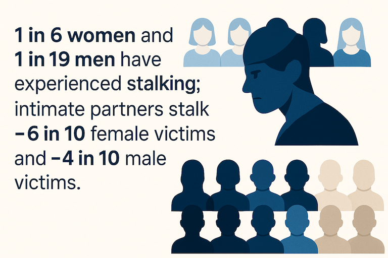 | 22 | 1 in 6 women and 1 in 19 men have experienced stalking; intimate partners stalk ~6 in 10 female victims and ~4 in 10 male victims. | NCBI/StatPearls |